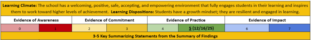 The student survey scored teacher to student relationship very high. Students have a trusted adult and parents expressed their appreciation for the staff and school leaders.
